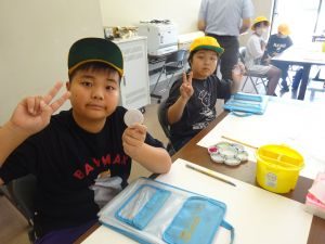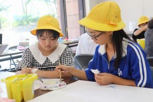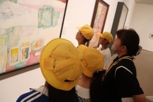 ワークショップでは、彩色を工夫し、世界に一つのオリジナル缶バッチを作りました。また、対話型アートツアーでは、作品を鑑賞しながら、感じたことを伝え合う活動を行いました。児童たちは、アートをとおして交流を深めていました。