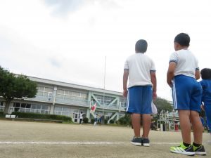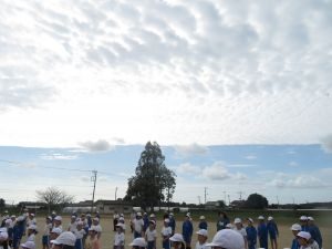 秋空の中、閉会式の練習、縦割り種目の練習を行いました。