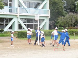 式の練習では、児童の礼(お辞儀)がすばらしかったです。縦割り種目の練習も今日で最後であったため、対話をしながら作戦会議をしていました。