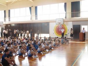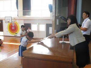 前期終業式では、校長先生から、児童の挨拶が大きくなってきたこと、スポーツフェスティバルに向き合う姿勢が素晴らしいこと等についてのお話がありました。本日、児童が受け取った「あゆみ」には、一人一人の頑張りが記入されています。後期も自分の良さをどんどん伸ばしてください。