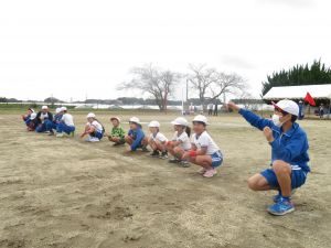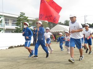 前日の雨で校庭がぬかるんでいたため、予定より時間を遅らせて予行練習を実施しました。