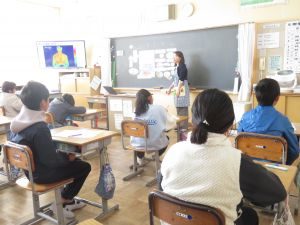 鉾田市内の栄養教諭の先生に、朝ごはんについての授業を行っていただきました。