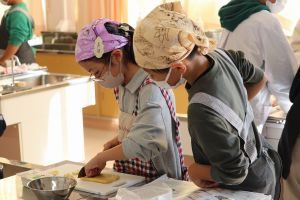 お味噌汁も入れる具によって切り方が違うので友達と協力しながら作ることができました。