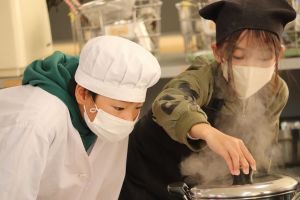 火加減に気をつけながらご飯を炊き、ほかほかのご飯が炊けたときにはどの班からも歓声があがりました。