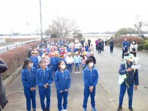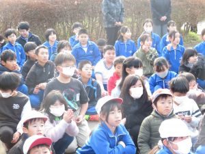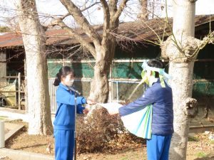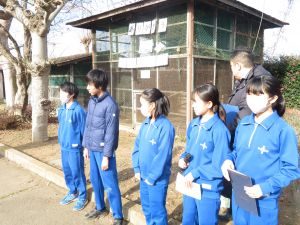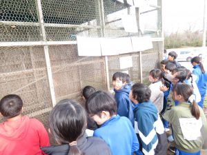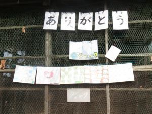 みんなで寄せ書きをし、飼育小屋に飾り付け、6年生が中心に式を執り行いました。