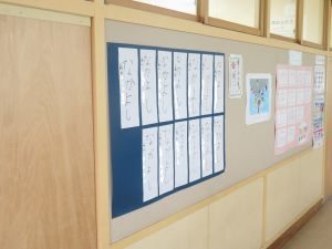 各学年、子どもたちの作品を廊下に掲示しております。