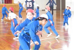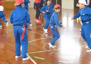 1/21(水)フラッグフットボール体験教室(4年生)暑い時期に予定されて延期になっていた「フラッグフットボール体験教室」が本日行われました。 茨城セイバーズの選手や、筑波大学アメフト部の学生、鉾田市生涯学習課の方々にお世話になりました。 児童は、今日をとても楽しみにしてフラッグフットボールを体験しました。相手にフラッグをとられないように腰を捻るなどの技を教えていただき、積極的に実践していました。