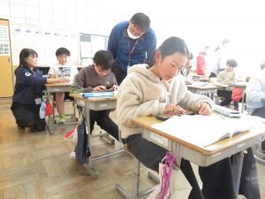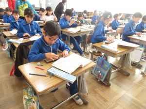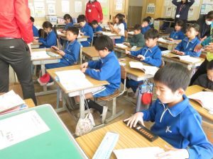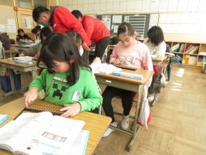 今日は、鉾田市の郵便局の方にお世話になり、3、4年生の「そろばん教室」が行われました。