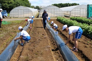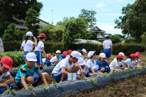 講師に吉田さん PTAの小玉会長さん 高田副会長さんを招いて,サツマイモ(シルクスウィート)の苗植えをしました。