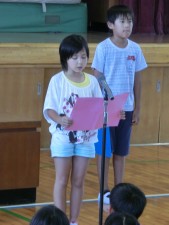 1学期終業式を実施しました。代表児童が1学期の振り返りを堂々と発表できました。