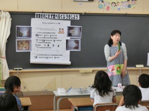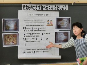 栄養教諭の新堀先生をお迎えして,3年生が食育指導の授業を受けました。子供たちは,「給食を残さず食べる工夫」について一生懸命考えました。