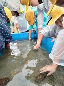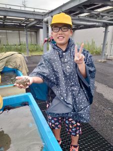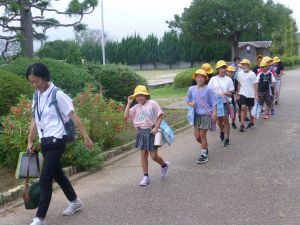 朝、5年生が校外学習に出かけました。鹿嶋市の栽培漁業センターの見学です。