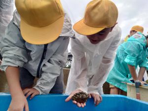 5年生が、社会科の授業の一環で校外学習に行ってきました。教科書ではなく、実際に現地に赴き、実物や展示物を見て、ときには手で触れて、本物を体験することは、大変意義のあることです。この栽培漁業センターでは、県の魚であるヒラメなどを「栽培」し、小さな稚魚の状態で海に放流するといった活動が行われています。5年生たちは、そうした概要を聞いたり、センターで育てている魚等に触ったり、展示物を見てメモをとったりして、学びを深めていました。