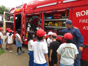 スポーツフェスティバルに向けて、各教室でダンスの練習が始まっています。その一部をご覧ください。 <1年生> <3年生> <4・5年生女子 昼休み> ここは、昼休みの5年教室で、5年生が4年生を誘って、自主的な練習が行われていました。本番を楽しみにしています。 消防署の皆様、地域の消防団の皆様、防災ヘリの皆様等、たくさんの方々のご協力をいただきました、本日防災訓練を実施しました。 テレビのニュースやドキュメントリーの番組等を通じて、私たちは日本各地の、あるいは全世界の地震や台風、津波、大雨、嵐といった自然災害等を目にすることはありますが、特にそういった経験のない子どもたちにとっては、こうしたことはテレビの向こう側で起こっていることという意識でしかないことが想像されます。でも、確率はごく低いかもしれませんが、そういうことは起こりえるものであり、加えていつ起こるか予想がつかないものです。2011年の東日本大震災を経験している私たち大人としては、「もしも有事の際には」という意識をもって、子どもたちに訓練を受けさせる必要があると考えております。そういう意味で、上記の各関係機関の皆様のご協力を得て防災訓練を実施することができたことは、大変価値のあることです。 今日の訓練では、放水(消火)訓練の見学、防災ヘリによる救助作業の見学の後、水消火器の訓練、煙体験、そして消防車両の見学等を行いました。やはり実物に触れるという意味で、今日の訓練の意味・価値は、とても大きなものとなったことと思います。 「自分の身は自分で守る」の原則の下、落ち着いて話を聞き、実物に触れたり、実際に体験したりすることで、少しは子どもたちの意識に訴えかける行事となったのではないかと思います。