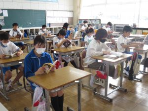 また本日は、1~3年生に向けて、にじいろのさかなの会のみなさんによる読み聞かせがありました。いつも子どもたちの興味を引く本を選んでいただき、子どもたちはこの読み聞かせの機会をとても楽しみにしています。今回も本当にありがとうございました。4~6年生は通常通りの読書タイムでしたが、後日読み聞かせの機会がありますので、楽しみにしていてください。