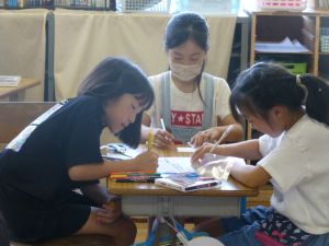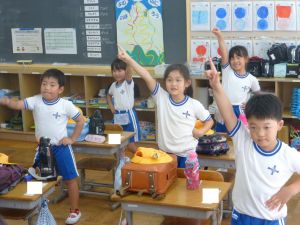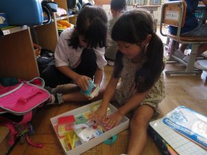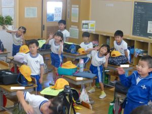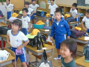 9月14日 1年生種をとったのかな。暑いので、どの学年も室内遊びです。
