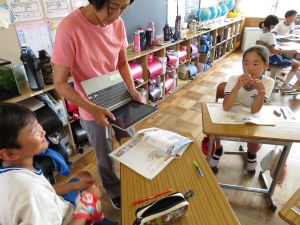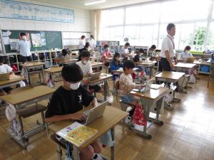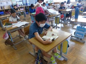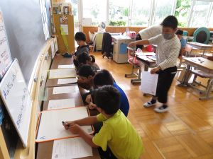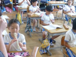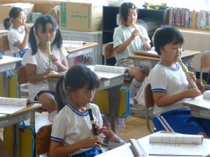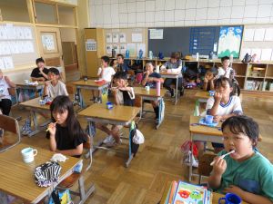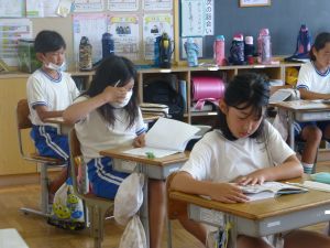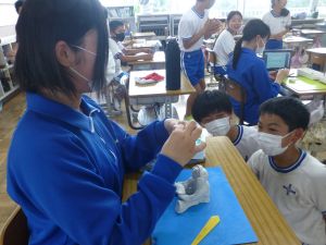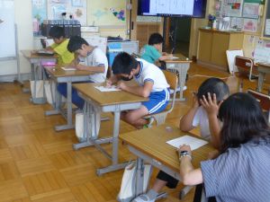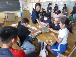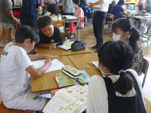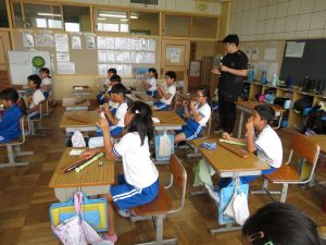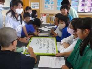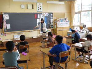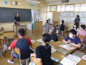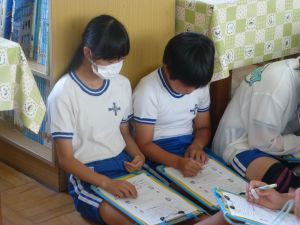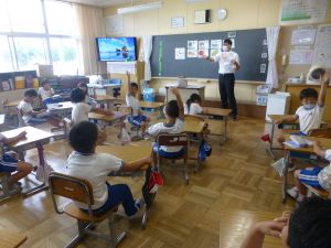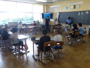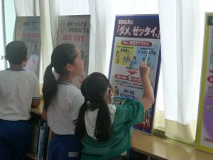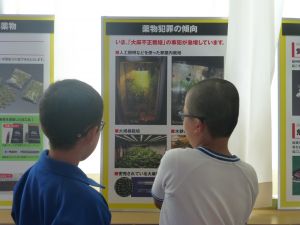最初に子どもたちは、少年サポートセンターの方の講話を聴き、その後にはセンターの方が用意してくださったパネル等を見て、様々な薬物の種類や現在の薬物犯罪の傾向、薬物の摂取による健康被害等について知ることができました。