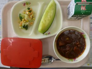 こうした児童主体の活動の様子を、今後とも積極的に発信していきます。特に学校のリーダーとして頑張っている高学年のみなさんは、今後もこのように取り上げる機会が多くあるものと思います。是非ご家庭での話題に取り上げていただき、お子さんの頑張りを褒めてあげる機会としてご活用いただけましたら幸いです。 今日のメニューは次の写真の通りです。