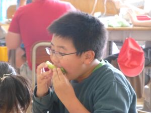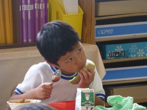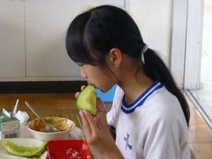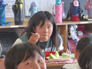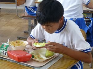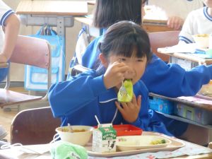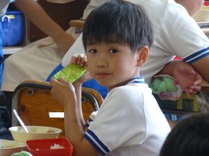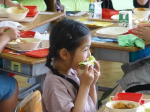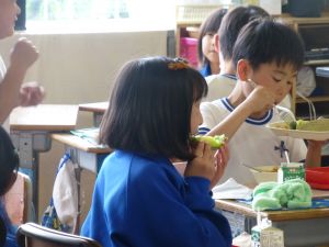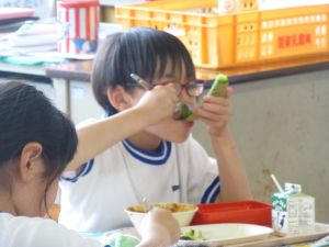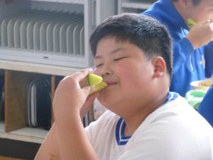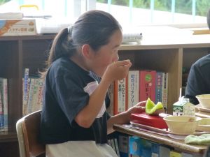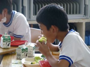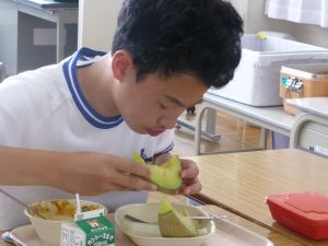 見たところ、子どもたちが喜びそうなメニューですが、その中でも一際目を引くのがやはりメロンです。昼の放送によると、これはJA旭村様・JAほこた様のご協力で提供されたもののようです。旭という土地柄、本校の児童はこの時期になると、日常的にメロンを口にする機会が増えるものと思いますが、それでもやはり「給食にメロン」というのは特別です。今日のメロン、私も先に賞味しましたが、本当に甘くて美味しいものでした。教室の様子をのぞくと、やはり笑顔で美味しそうに、そして嬉しそうにメロンを口にするたくさんの児童の姿を見ることができました。 JA旭村様・JAほこた様、今年も美味しいメロンを誠にありがとうございました。