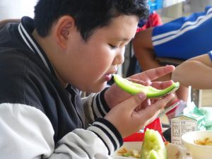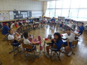 悪天候のため、楽しみにしていた遠足が延期となった高学年のみなさん。楽しみだっただけに、少しだけガッカリしたかもしれませんが、窓の外の悪天候の様子を見ると、延期の判断は正しかったなと少し安堵しているところです。まぁ、いずれにしてもこうした場合は結果論でしかないのですが・・・ 判断するということは、本当に難しいものだと毎回思います。 ただ、1つ嬉しいことといえば、やっぱり今日はお弁当だということ。毎度思いますが、本校の児童のお弁当のときの嬉しそうで楽しそうな様子を見ると、「この子たちは本当にお弁当が好きなんだな」と感じます。ちょうど食べ終わりそうな時間帯に5・6年教室を訪ね、冗談めかして「みんな、『おいしい』って顔をちょうだい!」と言って撮ったものがこの写真です。ただ、この嬉しそうな表情は、もちろん演技ではありません。 保護者の皆様、毎度お忙しい中でのお弁当の準備、本当にいつもいつもありがとうございます。心より感謝申し上げます。