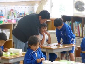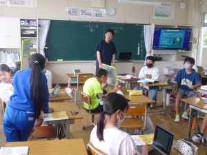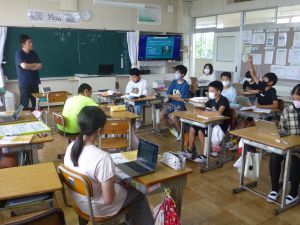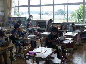 もう何年も前からになりますが、教育界では標記のことについて、その実践が図られています。要するに、古い時代の「新しい知識を先生から一方的に授けられる形の授業」ではいけませんよというものです。単元や学習内容によっては、今でも先生から授けられた知識を自分の頭の中にインプットしていくことが中心になる場面もありますが、それを積極的に外に出す活動(アウトプット)(児童同士の話合いや発表・・・他)を取り入れることによって、より一層定着が図られますよ、どんどん実践していきましょうという動きです。 鉾田市でも、鉾田市授業スタイル2ndという基本的な授業の型に沿って、児童がより対話的に、そして主体的に授業に向かっていけるようにという形が示されており、本校でも授業改善に努めてきているところです。ただこれは、なにも授業に限ったことではなく、実行委員会が中心になって進めるスポーツフェスティバルもそうだし、6年生のリーダーシップのもと子ども同士が話し合いながら活動を進めていく縦割り班活動も、その流れに沿ったものです。 今日の中休み、6年生が1・2年生教室で一緒に遊んでいる姿を見ました。これは「時間を守る意識が薄れてきている」という問題提起のもと、「どうすればいいか」について6年生が話合いを行った末の行動の1つです。特に、今日のような雨の日には、児童は教室で遊ぶことになりますが、そこに6年生が加わって一緒に遊んであげながら、雨の日の過ごし方について声をかけたり、3時間目のスタートに間に合うように片付けの声をかけたりするといった活動です。話合いの結果、6年生児童自身から出てきた意見が、早速このような形で実践に生かされたものです。児童自身の考えがよりよい「学校づくり」に生かされ、それによってなお一層主体的に様々な問題解決に向かっていくという私たちの目指すものを示す一場面でありました。