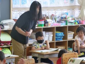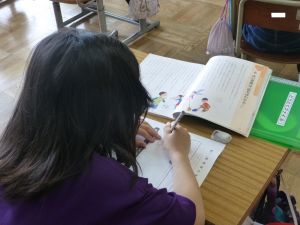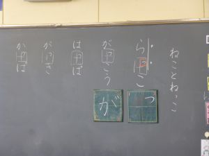 1校時の授業の様子を2つ紹介します。 1つ目は1年生。小さい「っ」を学習中のようです。