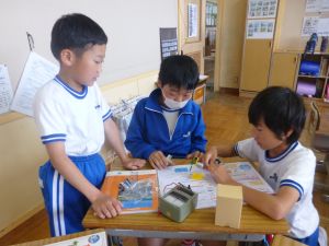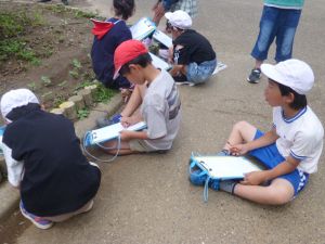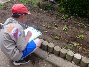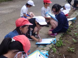 その他の学年でも道徳の授業が行われ、それぞれに充実した時間となりました。 1 3年生が植物の観察をしていました。先日種をまいたひまわりとホウセンカの育ちを記録しています。大きさや色、葉っぱの形などの特徴を上手く記録できたでしょうか。ひまわりは茎が紫に見えますし、ホウセンカはこんもりとした状態です。こんな風に育つんですね。再発見です。