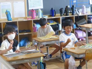 4年生は、転校生の掃除をしてくれないトムの話です。こういうことが本当にあったら、児童のみなさんはどのように思い、どのように考えるのでしょうか。実際には起きていないけれども、そういうことがいつ起きてもおかしくはない、そういう題材になっていました。先生からの発問にたくさんの手が挙がり、子どもたちの発表を聞くことができました。自分たちの正直な思いを発言し合えることは素晴らしいことです。