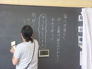 火曜日は全学年道徳がある日です。道徳は、1つのテーマについて児童それぞれが自分の考えをもち、友達の意見を聞いたり、友達と話し合ったりしながら「なるほど、たしかにそうだな」「そうか、そういう考え方もあるんだな」「いや、それは違うだろう」などと友達の意見に心を揺さぶられ、ときには教師からの一言に揺さぶられたりしながら、自分の考えを形成していきます。人の目を気にせずに、飾らない子どもたちの考えをたくさん見ることができる道徳の授業は、本当に面白いです。遠慮せず、身構えずに、ありのままの子どもたちの思いがぶつけ合える道徳になると、もっともっと楽しい時間になっていくのではないかと感じています。 5年生はきまりやルールについての授業でした。きまりやルールについて、それぞれが考えを深めることができたでしょうか。