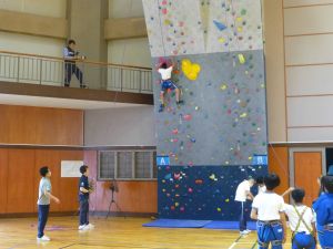 今日は6年生のクライミング教室。バスで市の総合運動公園・体育館まで行ってきました。旭西小の看板を背負う者として、しっかりとあいさつや行動ができたと思います。クライミングは楽しかったようで、ものすごく上の方までのぼる子もいれば、自分は苦手だけど友達の応援をがんばる子もいました。なかなかない機会ですので、楽しい思い出として残ったのではないでしょうか。6年生の保護者のみなさん、是非お家でお話を聞いてみてください。