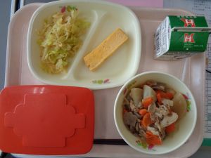 今日も卒業式の練習を行いました。在校生は、歌声や呼びかけ等の練習を行い、もうだいたい準備が整いました。今日は2年生がとてもいい声で歌ったり、呼びかけを行ったりしていました。卒業生は、全体の流れや動きをほとんど確認することができました。全体として準備はかなり整いつつあります。 給食は「the 和」というメニューでした。子どもたちの好みはどうか分かりませんが、大人にはちょうどいいメニューだった気がします。