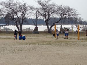 好天に恵まれ、温かい気温のもと、サッカーやドッチボールに興じる姿、集まっておしゃべりする姿が見られました。