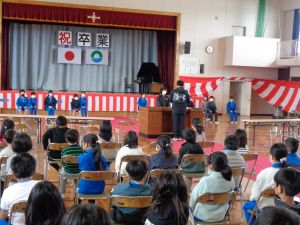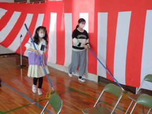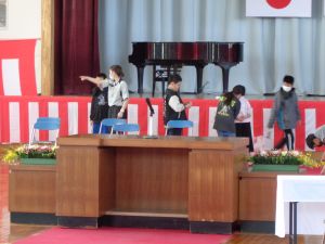 4・5年生は、式場の清掃・準備をはじめ、教室やトイレ、昇降口、正門や校舎前の通路の清掃などを行い、もう明日の式本番を待つばかりです。4・5年生のみなさん、ありがとうございました。