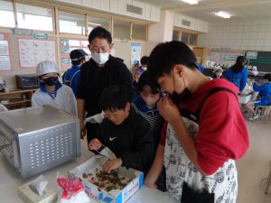 6年生がカップケーキ作りを楽しみました。「うまくいった!」「失敗した!」と大騒ぎする6年生。でも、失敗した班も、間違いなく楽しそうでした。6年生保護者の大沼さんから、6年生の卒業記念にと美味しいイチゴをいただき、6年生はみずみずしくて甘いイチゴを堪能していました。卒業を目前に控えた今日のこの活動は、6年生にとって最後の楽しかった思い出として記憶に残ることでしょう。