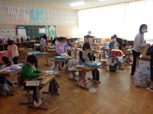 午後は、1~3年生は、持ち帰るものの整理等を行っていました。今年使った机やロッカー、教室等がかなり片付いてきました。次の学年に向けて、着々と準備が進んでいます。一方6年生は、最後の時間を、みんなでサッカーなどをして楽しんでいました。