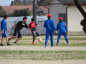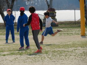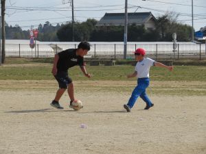 午後の授業の様子です。6年生が元気にサッカーをしています。