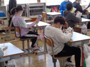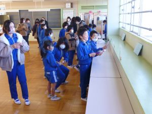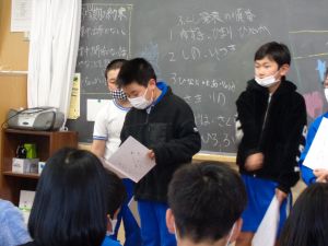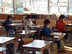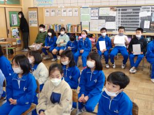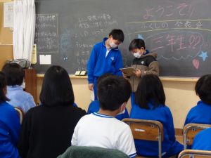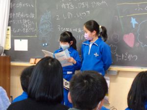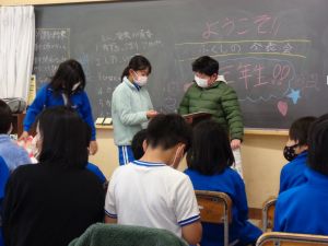 5校時、これまで4年生が総合的な学習の時間に調べてきた福祉について、3年生に向けて発表を行いました。点字、手話、盲導犬や白杖などについて調べた事柄を3年生に伝えると、3年生からはたくさんの質問や感想の発表があり、大変実りある時間となりました。