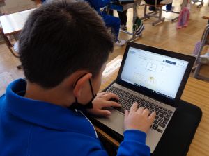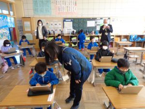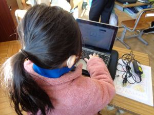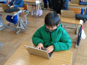 1年生は、先日指導を受けて以降、現在はタイピングのトレーニング期間として、毎朝短い時間を使って練習に取り組んでいます。また、ご指導くださった教育委員会の先生方も、子どもたちの練習の様子や上達の推移を見守るために、まめに本校を訪れてくださっているところです。