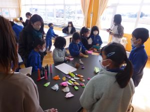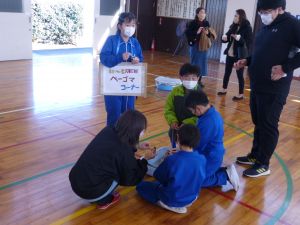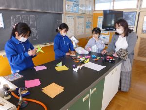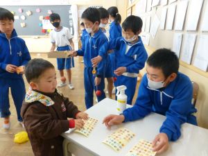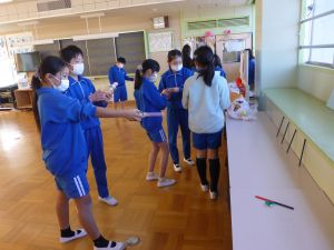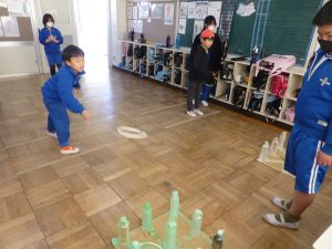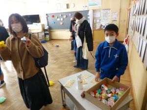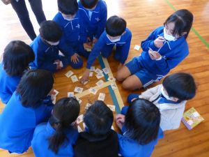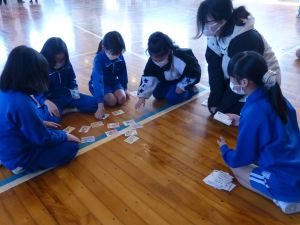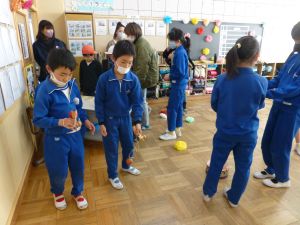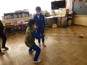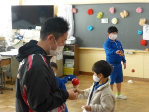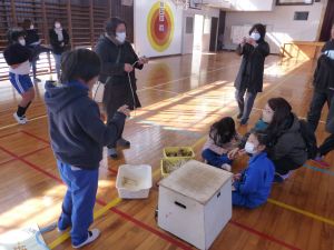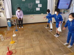 ふれあい学習の午前の部は、むかし遊び体験です。これは、4~6年生が準備した催しで、1~3年生も保護者の皆さんも一緒に楽しむ姿が見られました。児童の企画で子どもと大人がふれあいを楽しむことができました。