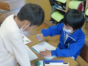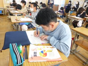3校時、2年生はかけ算九九の時間です。今日は7の段でした。かけ算はこの先とても大切です。しっかり覚えてくださいね。