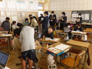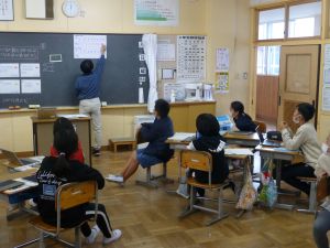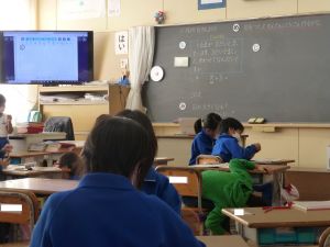 今日の4年生の算数は、授業研究として校内の教員が集まり、みんなで授業を見て勉強しました。「変わり方」の単元で、「比例」やその他の変わり方について考える授業でした。 放課後には研究協議をもち、算数の指導法について協議する予定です。