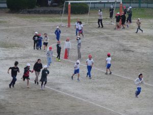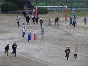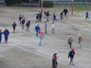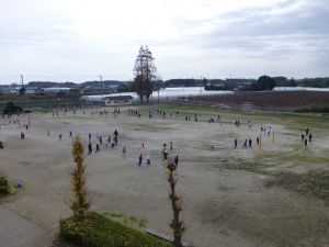 いいよ明日は持久走大会。今日は最後の業間マラソンです。 旭西小児童の頑張りを期待しています。 なお、天候が多少危ぶまれる状況のようです。天候や校庭の状況を見て、明朝には実施の有無についてメール配信させていただきますのでよろしくお願いいたします。 今日は屋上から撮ってみました。小さくて、誰が走っているのかは分かりにくいとは思いますが・・・