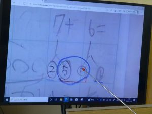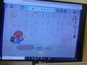 1年生は足し算です。単純な足し算の計算問題ではなく、文章問題です。足して10を超える答えになるので、そのやり方をよく考える必要があります。10のまとまりを作ればいいのですね。