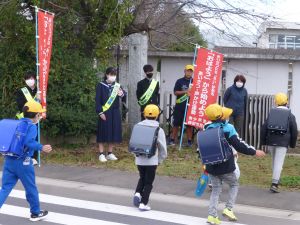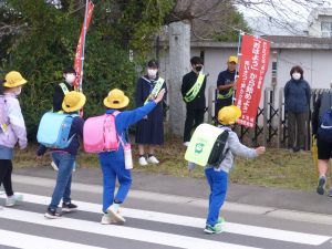その「いばらき教育の日」にあたる今日、あいさつ運動を実施し、本校からは計画委員児童5名が参加しました。また、今日のあいさつ運動には、本校卒業の旭中1年生が9名、市生涯学習課から1名、青少年相談員1名、市育成市民会議から1名がご参加くださいました。ご協力ありがとうございました。