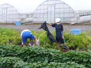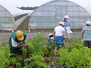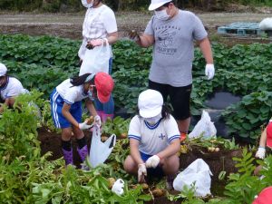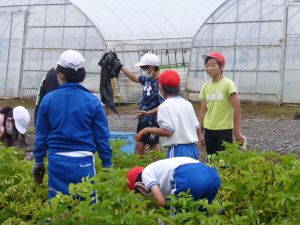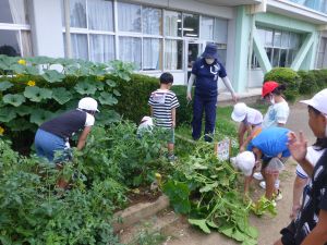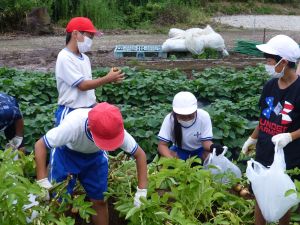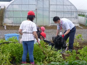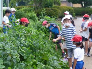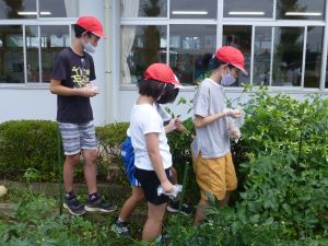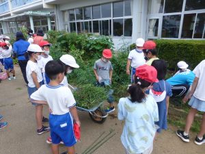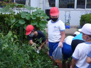 そしてこのあと引き渡し訓練となります。お暑い中、そして保護者の皆様にはなにかとご多用の中、ご協力をいただきますこと心より感謝申し上げます。お越しの際は、くれぐれも安全運転でお願いいたします。 また、同じく明日からの個別面談でもお世話になります。通信表では伝えきれないことについて、お家の方と対面でお話しできる貴重な機会です。よろしくお願いいたします。 なお、先日から、通信機器の利用にあたってのルールづくりについてお願いしているわけですが、まだご提出がお済みでない方は、面談の際に担任まで直接ご提出いただきますようご協力よろしくお願いいたします。 今日は1学期最後の縦割り班農園活動日。ミニトマトなどの収穫があったようです。暑さと雨のお陰で生い茂った草を、一生懸命に抜きました。