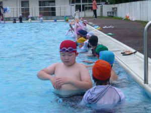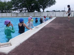 水泳学習も1学期最終です。写真は中学年の様子ですが、このあと低・高学年も水泳学習を行いました。シャワーの水は冷たいようですが、プールに入ってしまうと気持ちがいいようです。