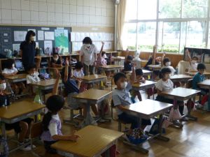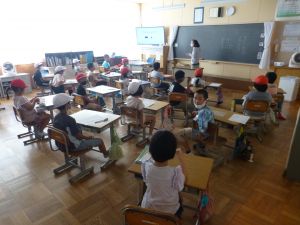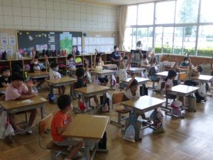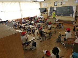 事後には校長先生からお話をいただき、避難訓練の振り返りを各教室で行っていました。