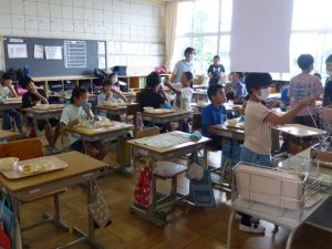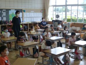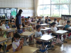 まだ残暑の厳しい折ではありますが、徐々に秋らしい気候になってくる2学期。 秋は、気候的に運動やスポーツ等にとても適した季節です。 スポーツフェスティバルをはじめ行事もたくさんあり、学習に、運動に、みなさんの活躍を楽しみにしています。 保護者の皆様、2学期もよろしくお願いいたします。 ☆ さて、本日は14:30一斉下校となっております。 また、今月の予定につきましては、本日各学級で学年だよりが配付される他、このHP上にも9月の予定を掲載しておりますので、ご活用ください。 夏休み初日。児童のみなさんはどのように過ごしたでしょうか。 学校では個別面談が行われました。 そんな中、保護者のみなさん以外にも「来校者」がありました。