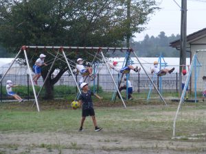 2学期2日目。朝からあいにくの天気です。 業間休み、天気は決してよくありませんでしたが、我慢できずに外遊びを楽しむ様子が見られました。軽く降っていたかもしれませんが、そんなことはお構いなしにブランコを夢中でこぎ、異年齢の集団が夢中になってサッカーを行っていました。