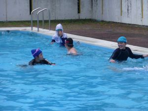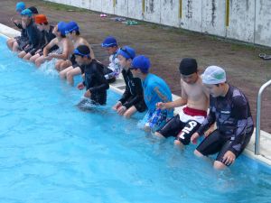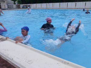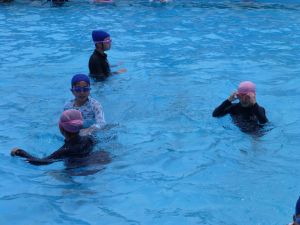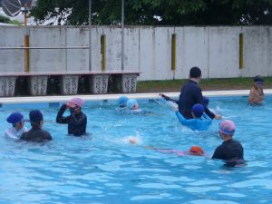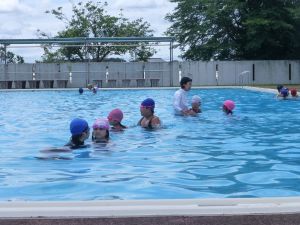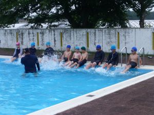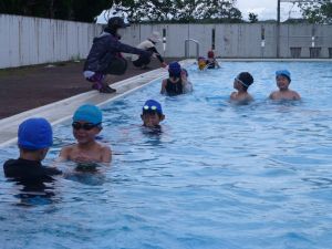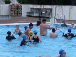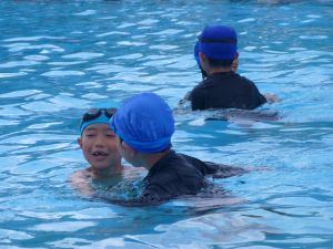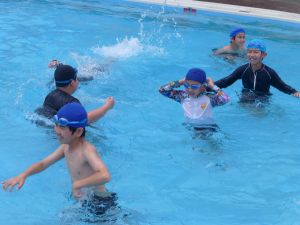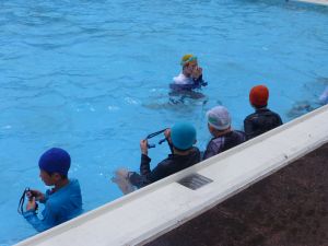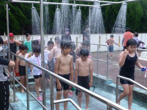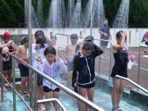 今日は、外部から指導者を迎えての水泳学習です。 ちょうど中学年が終わってシャワーを浴びているところです。